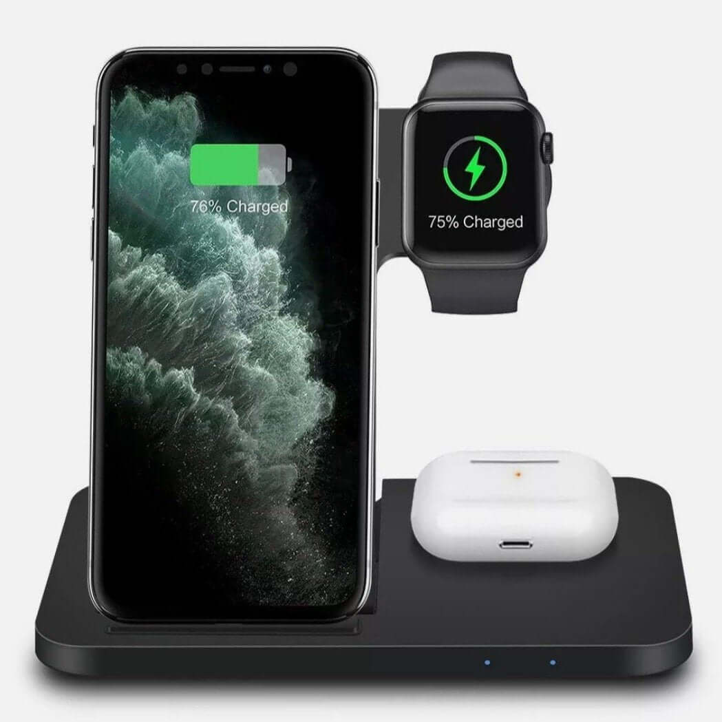 Never worry about dead devices again—take the Portable Foldable 3 in1 Wireless Charging Station anywhere. Its sleek, foldable design makes it perfect for travel, while fast, reliable charging keeps your phone, Apple Watch, and AirPods powered and ready for work, play, or on-the-go adventures. Stay connected, organized, and worry-free with this all-in-one charging solution.