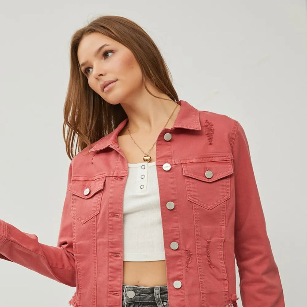 The unique raw hem gives this jacket a cool, eye-catching vibe, instantly elevating casual outfits.